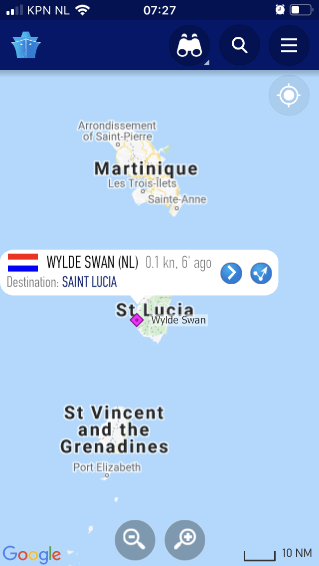 We hebben vanochtend via Whatsapp voice-contact gehad met Sjoerd. Vanwege de gewijzigde plannen en de behoefte aan contact tussen trainees en het thuisfront daarover, heeft de Masterskip-organisatie een 4G internetbundel ingekocht op Saint Lucia en vanochtend een wifispot ingericht op het achterdek van de Wylde Swan, waardoor de trainees vanaf daar via Whatsapp naar huis konden bellen. Iedere trainee kreeg een vast aantal belminuten, waardoor wij een kleine tien minuten met Sjoerd hebben kunnen bellen.